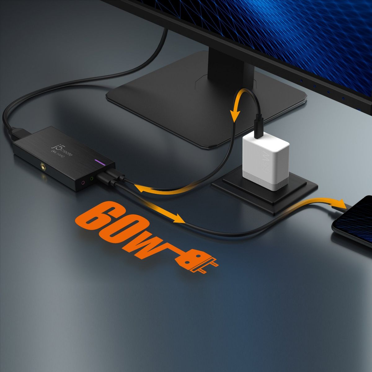 The JVA14 4K Game Capture Station is a capture device designed to stream and record your gameplay. It supports 4K @ 30 FPS video capture with 4K @ 60 FPS passthrough for consoles capable of 4K resolution. It has a 3.5 mm Audio In port and Mic In port allowing a headset to be connected for live commentary streaming on PlayStation™ 4 / 5, Xbox™ Series X / S, Xbox™ One X / S. It is fully compatible with OBS™ and other video streaming software, making it perfect for live streaming. The JVA14 is plug-and-play and compatible with macOS® and Windows® laptops and desktops.
