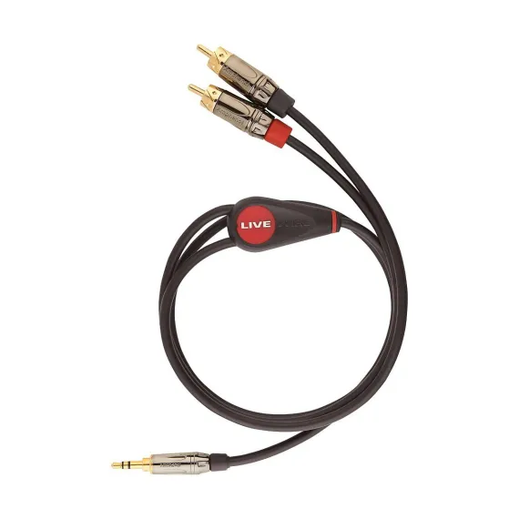 3.5 mm TRS male to dual RCA male. Ideal for MP3 player output to stereo input. Gold-plated Amphenol connectors with 100% oxygen-free copper, 26-gauge conductors, braided copper shielding and a resilient PVC jacket. Livewire Elite Series represents the highest standard for pristine, transparent, uncolored audio connectivity in an exceptionally rugged design for studio, stage or broadcast.Gold Plated Amphenol Connectors100% Oxygen Free Copper26g Conductors With Braided Copper ShieldGuaranteed For Life