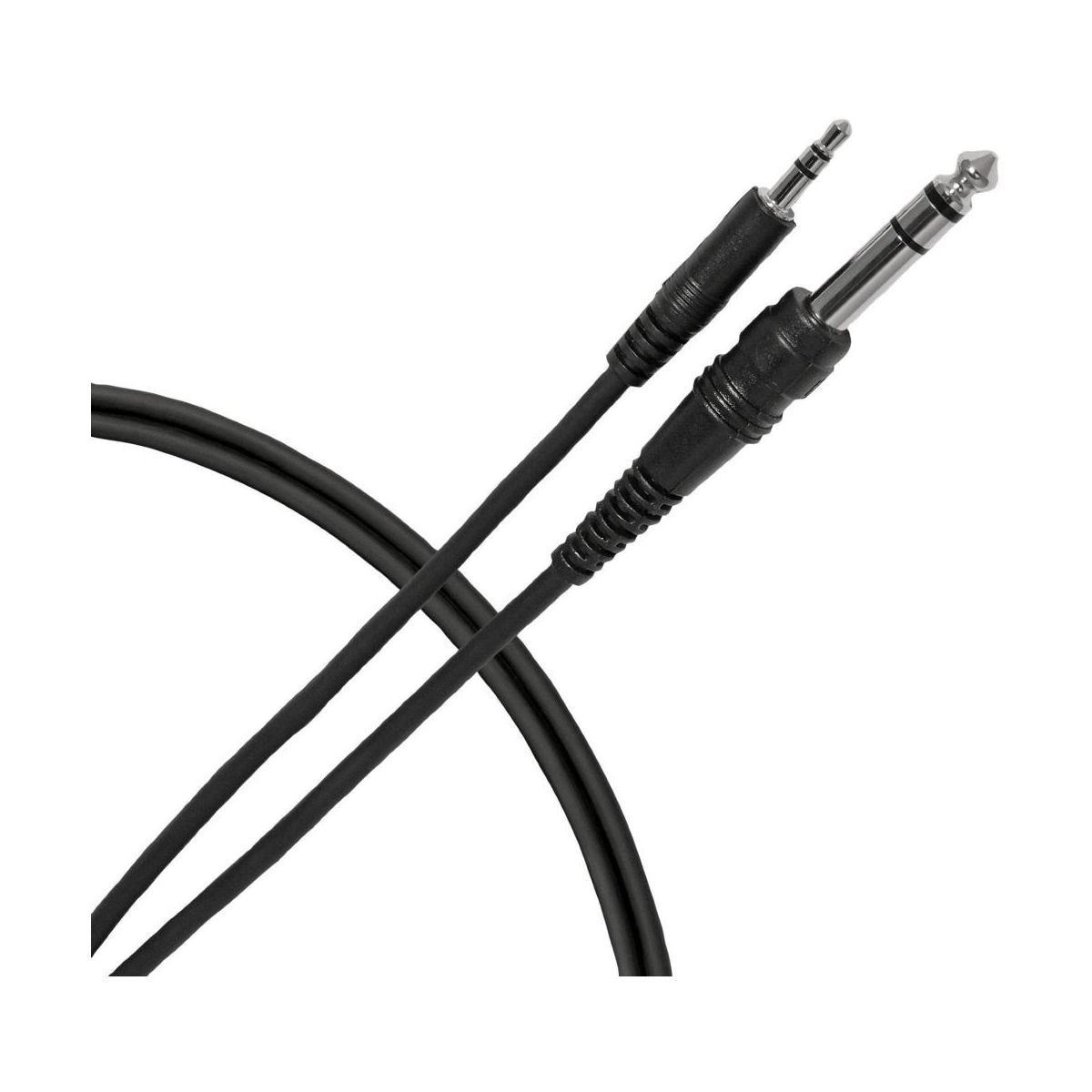 3.5 mm TRS male to 1/4" TRS male. Sturdy, reliable audio component connectors with molded strain relief.