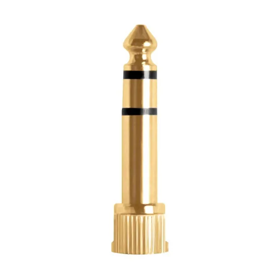3.5 mm TRS female to 1/4" TRS male. Ideal for adapting headphones to a 1/4" output. Threaded sleeve secures adapter to headphone, all metal construction. Reliable connectivity between cables and audio components.