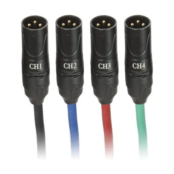 LyxPro 4-Ch XLR Audio Lighting Snake, 3-Pin Breakout, 3ft Cable, Stage/Studio Male Connector