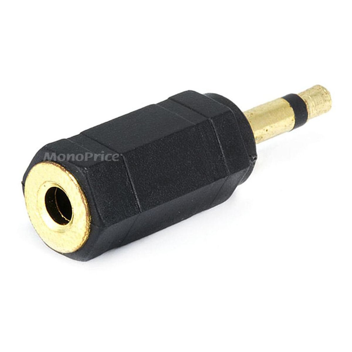 Monoprice 3.5mm TS Mono Plug to 3.5mm TRS Stereo Jack Adapter, Gold Plated enables seamless connectivity between different interfaces. Compact and reliable, it's suitable for various AV and networking applications.