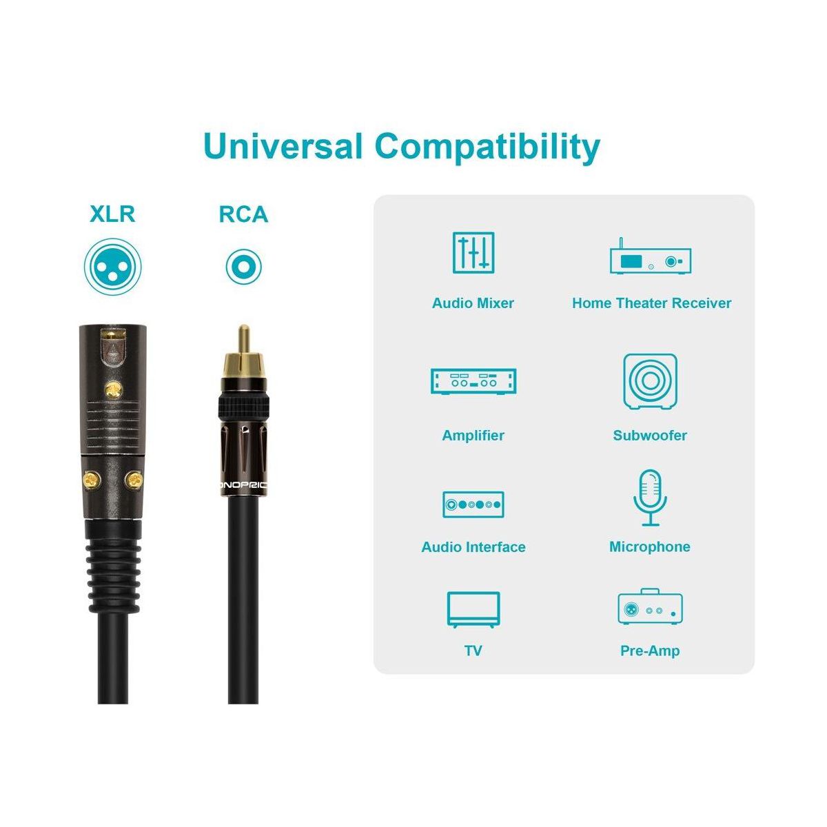 Monoprice 3ft Premier Series XLR Male to RCA Male Cable, 16AWG (Gold Plated) is a high-quality product designed for reliable performance in its category. Suitable for various professional and consumer applications.