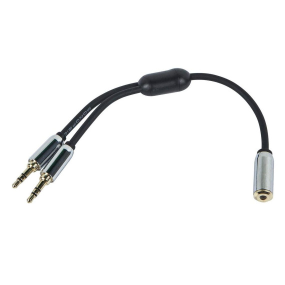 Monoprice Audio Cable - 0.5 Feet - Black | 3.5mm Female Plug to Two 3.5mm Male Jacks for Mobile, Gold Plated