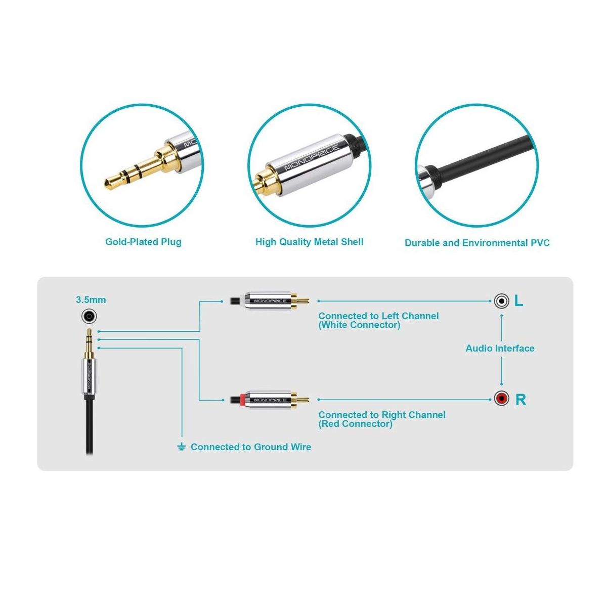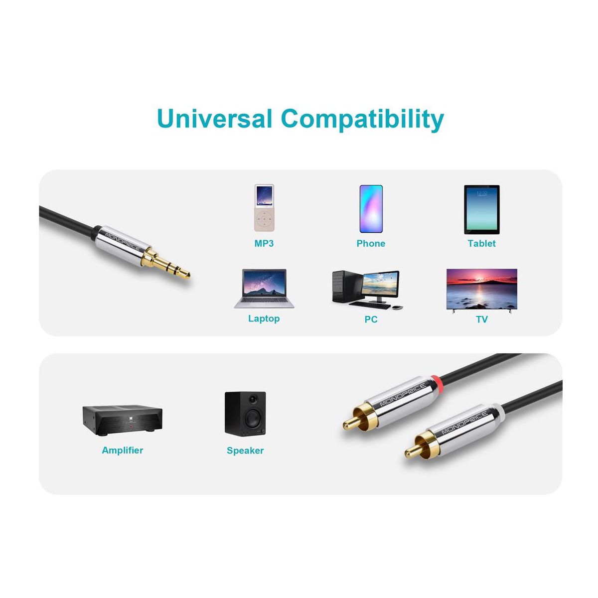 Monoprice Audio Cable - 3 Feet - Black | 3.5mm Stereo Male to RCA Stereo Male Gold Plated Cable for Mobile