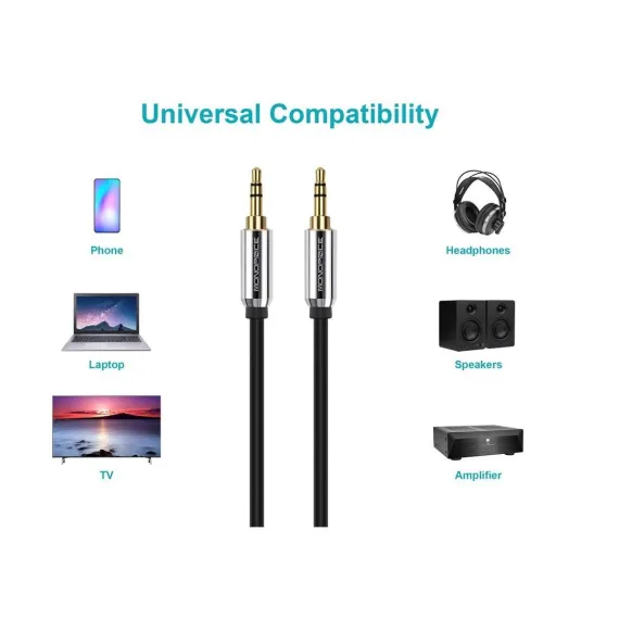 Monoprice Audio Cable - 6 Feet - Black | 3.5mm Stereo Male to 3.5mm Stereo Male Gold Plated Cable for Mobile