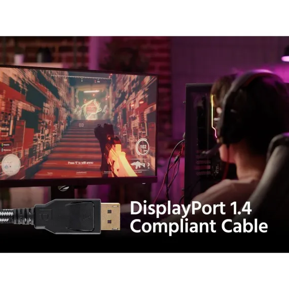 Monoprice Braided DisplayPort 1.4 Cables are compatible with the newest DisplayPort 1.4 specification. With DisplayPort 1.4, you can connect your Displayport equipped ultra-high performance gaming PC or workstation to a high resolution monitor. This cable features support for High Bit Rate 3 (HBR3), Display Stream Compression 1.2 (DSC), Forward Error Correction, and up to 32 Inline Audio Channels. It is fully compatible with older DisplayPort standards and includes the standard DisplayPort connector locks, which helps prevent unwanted disconnects and provides long lasting connectivity.