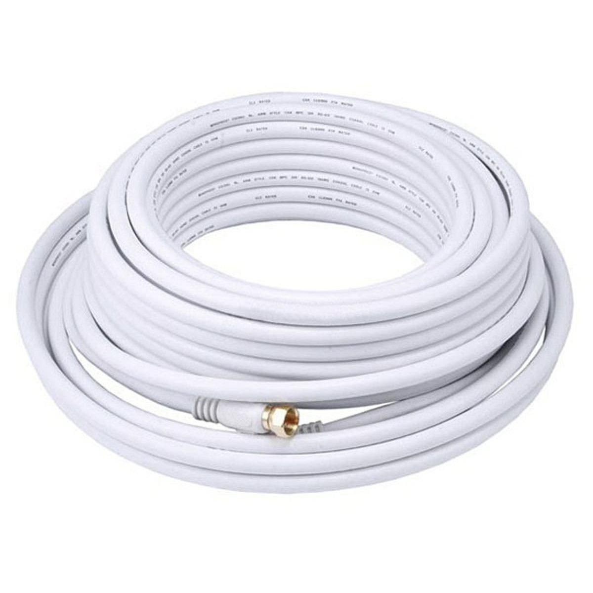 Monoprice Coaxial Cable - 50 Feet - White | RG6 Quad Shield CL2 with F Type Connector, 75 Ohm 18AWG