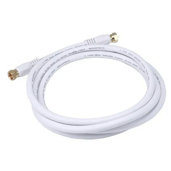 Monoprice Coaxial Cable - 6 Feet - White | RG6 Quad Shield CL2 with F Type Connector, 75 Ohm 18AWG