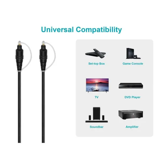Optical S/PDIF (aka Toslink) cables are an excellent way to distribute high-definition, multi-channel audio without the risk of common electrical problems, such as ground loops or RF and EM interference. This cable features a full-sized Toslink connector on each end and molded connector heads and strain-relief boots.