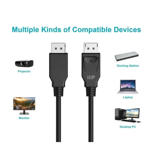 Monoprice Select Series DisplayPort 1.4 Cables are compatible with the newest DisplayPort 1.4 specification. With DisplayPort 1.4, you can connect your Displayport equipped ultra-high performance Gaming PC or workstation to a High Resolution Monitor. This cable features support for High Bit Rate 3 (HBR3), Display Stream Compression 1.2 (DSC), Forward Error Correction, and up to 32 Inline Audio Channels. It is fully compatible with older DisplayPort standards and include the standard DisplayPort connector locks, which helps prevent unwanted disconnects and provides long lasting connectivity.