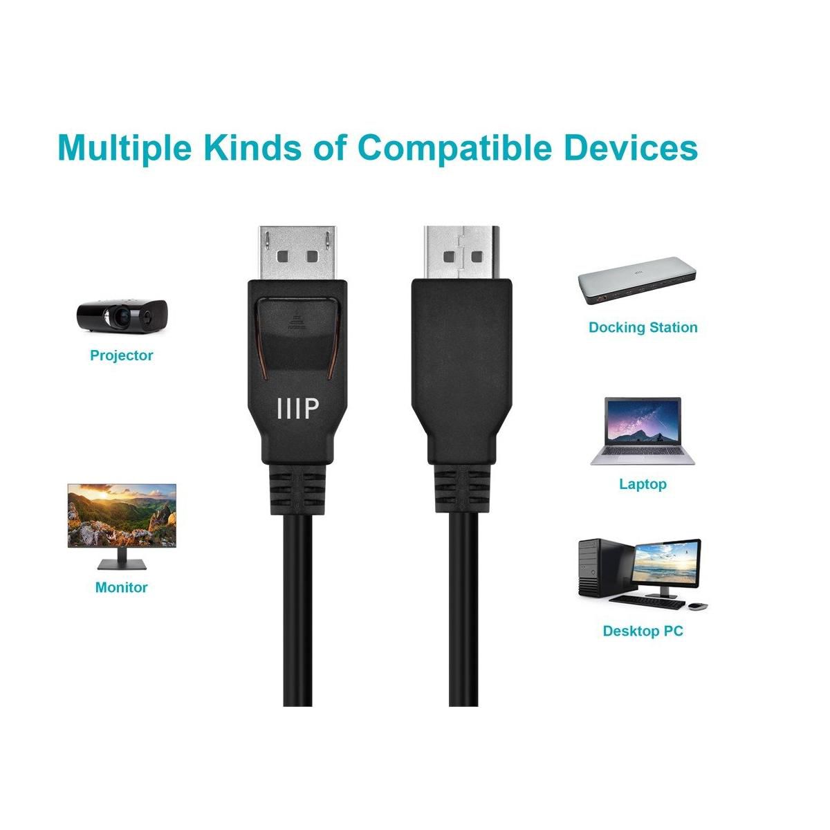 Monoprice DisplayPort 1.4 Cable - 6 Feet - Black | For Computer, Desktop, Laptop, PC, Monitor, Projector, Dell, ASUS, and More - Select Series