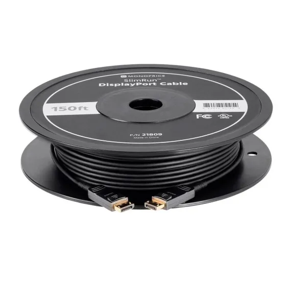 Monoprice SlimRun AV DisplayPort Cable, 32.4Gbps, 8K@30Hz, 5K@60Hz, 4K@120Hz, Fiber Optic, AOC, 20ft supports high-resolution video output for monitors and displays. Ideal for professional and home office environments.