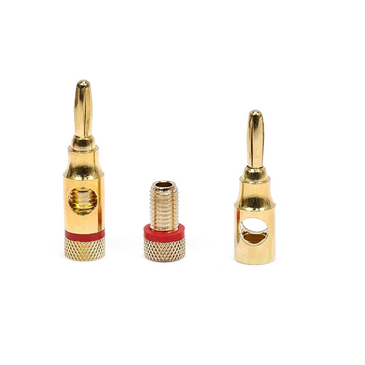 These high quality plugs are the open screw type and can accept bare wire, spades, or other banana plugs. They are sized to fit speaker wire from 12 to 18 AWG. Each pair comes with one plug color coded red and the other coded black, for easy polarity identification.