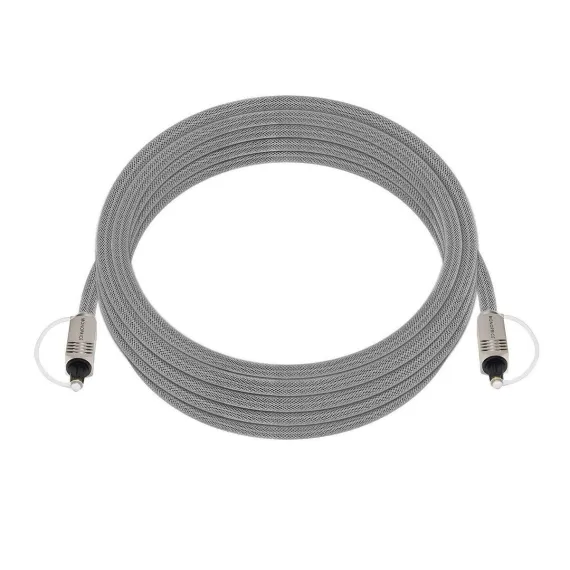 Experience superb sonic clarity and accurate musical reproduction with this Premium S/PDIF (Toslink) Digital Optical Audio Cable from Monoprice! The Sony/Philips Digital Interface Format provides for a Digital Optical Audio signal, commonly referred to as Toslink. Toslink allows for the distribution of uncompressed 2-channel PCM audio or compressed multichannel audio, such as DTS or Dolby 5.1 or 7.1. Being an optical signal, Toslink is immune to problems that can plague electrical signals, such as crosstalk, magnetic interference, or radio frequency interference. This premium cable features a full-sized Toslink connector on each end, with metal connector heads and a metal mesh jacket. The metal jacket helps protect the cable from nicks, cuts, and kinks, which could cause damage to the internal optical fiber.