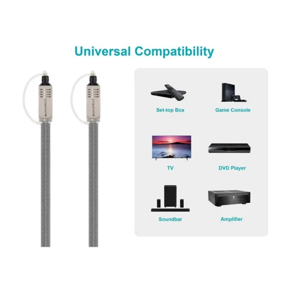 Monoprice Premium S/PDIF (Toslink) Digital Optical Audio Cable - Silver - 6 Feet | Heavy Duty Mesh Jacket, Metal Connector Heads, For Play Station,