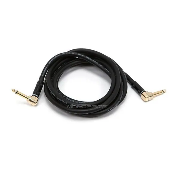 Connect speakers and other audio equipment with this Premium 1/4 TS Patch Cable with 90-degree connectors from Monoprice!This unbalanced cable features 90-degree TS/Mono plugs on each end. It uses 16 AWG stranded, pure copper conductors and employs copper braid shielding with 97.5 Percent coverage to ensure that stray radio frequency and electromagnetic signals do not degrade the audio quality of your performance. The plugs are gold plated to provide smooth, corrosion-free connections as well as maximum electrical conductivity.Note that this cable is intended for general audio use. For high-end, low-noise performance and recording use we recommend our Cloth Series cables, PIDs 601410, 601415, and 601420.