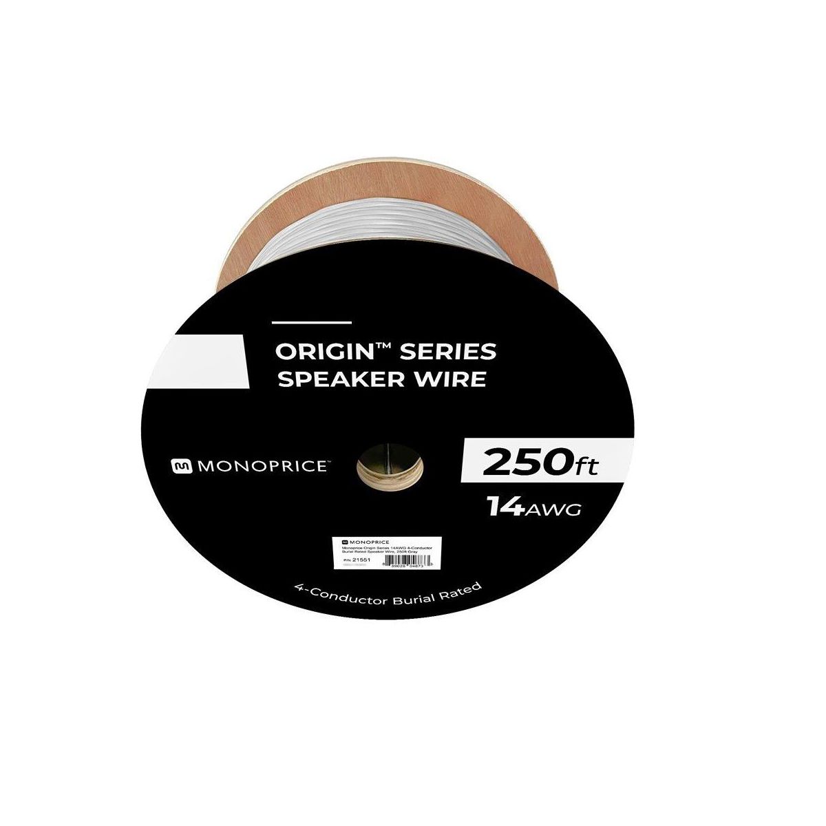 Monoprice Speaker Wire, Burial Rated, 4-Conductor, 14AWG, 250ft, Gray