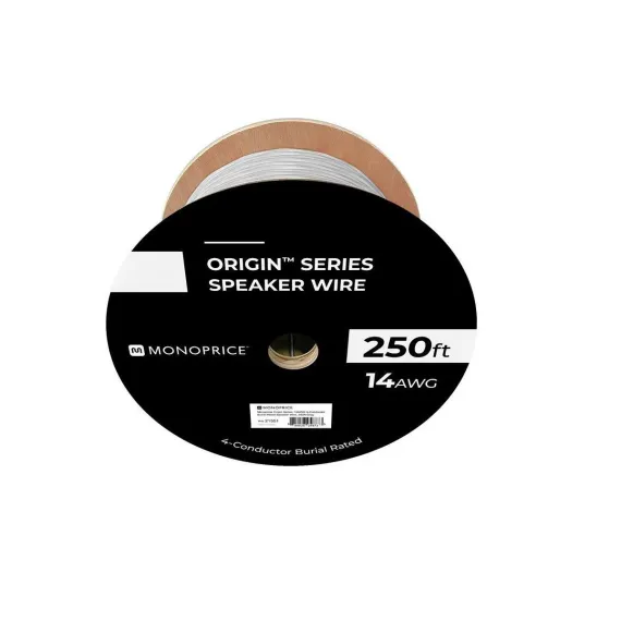 Monoprice Origin Direct Burial Series Speaker wire feature a robust moisture resistant polyethylene jacket paired with a water blocking tape, providing many years of reliable conductivity. Available in a variety of lengths and gauges, you can choose two-conductor versions, for connecting a single speaker, or four-conductor versions for connecting speaker pairs. The 100 Percent pure oxygen-free copper conductors are sheathed in color-coded jackets contained within the main moisture resistant jacket. Backed by Monoprice's Lifetime Warranty, Monoprice Origin Direct Burial Series Speaker wire is the ultimate speaker wire for outdoor commercial and residential installations.
