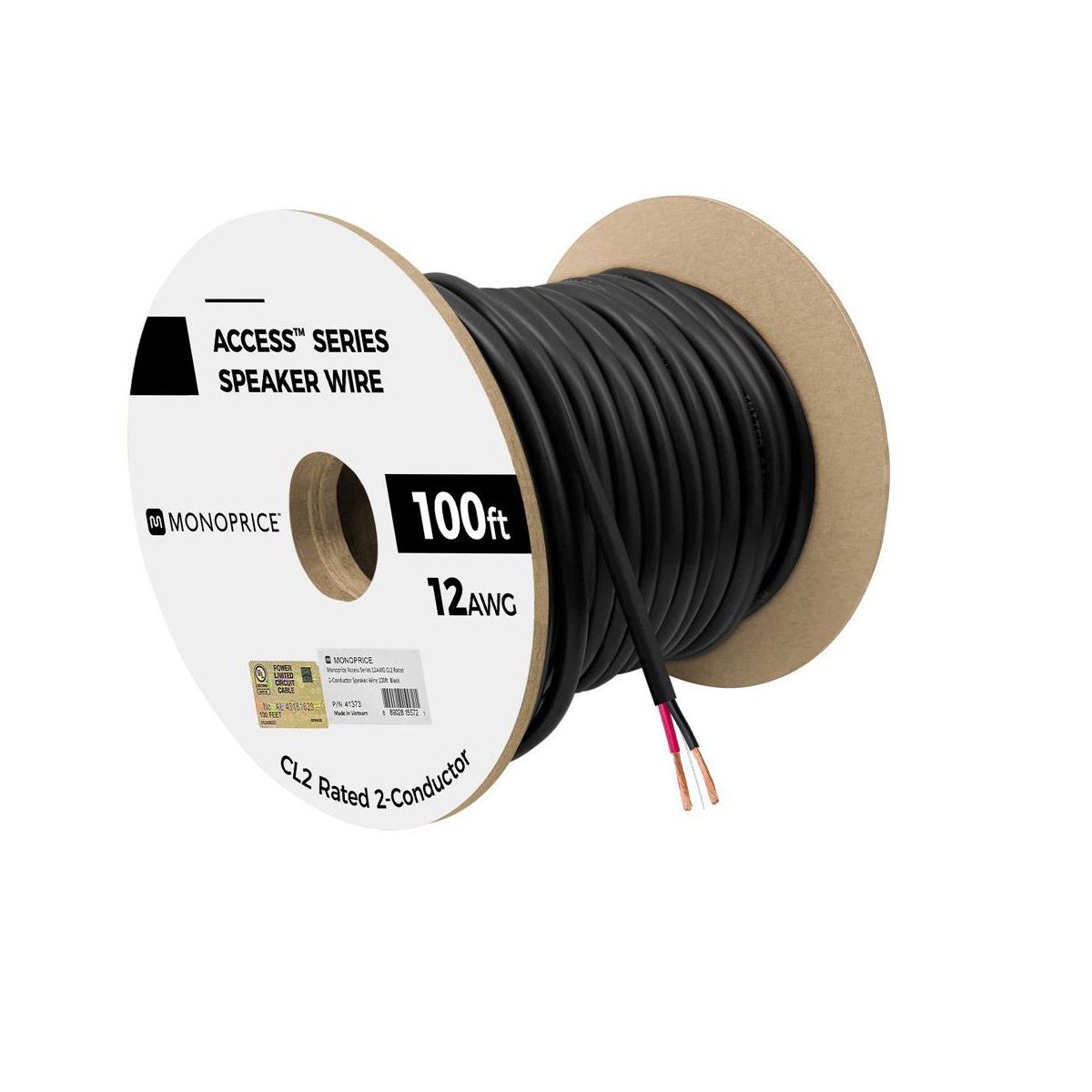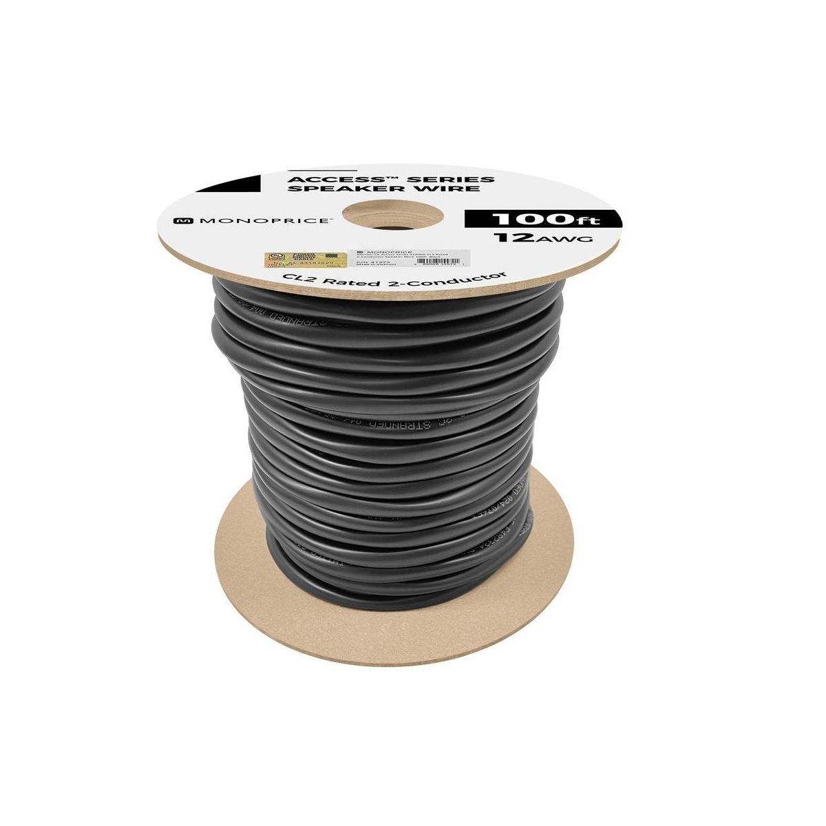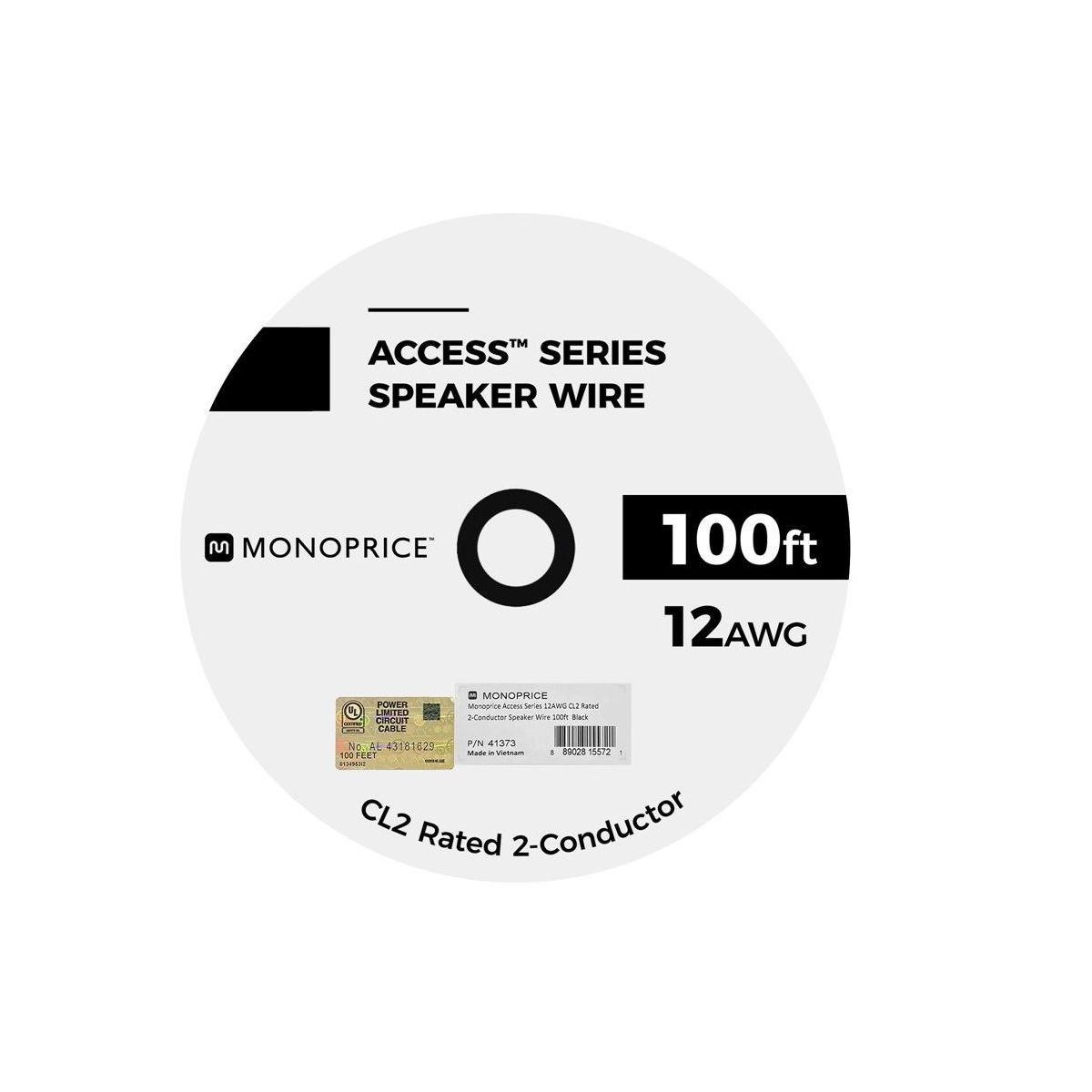 Monoprice Speaker Wire, CL2 Rated, 2-Conductor, 12AWG, 100ft, Black