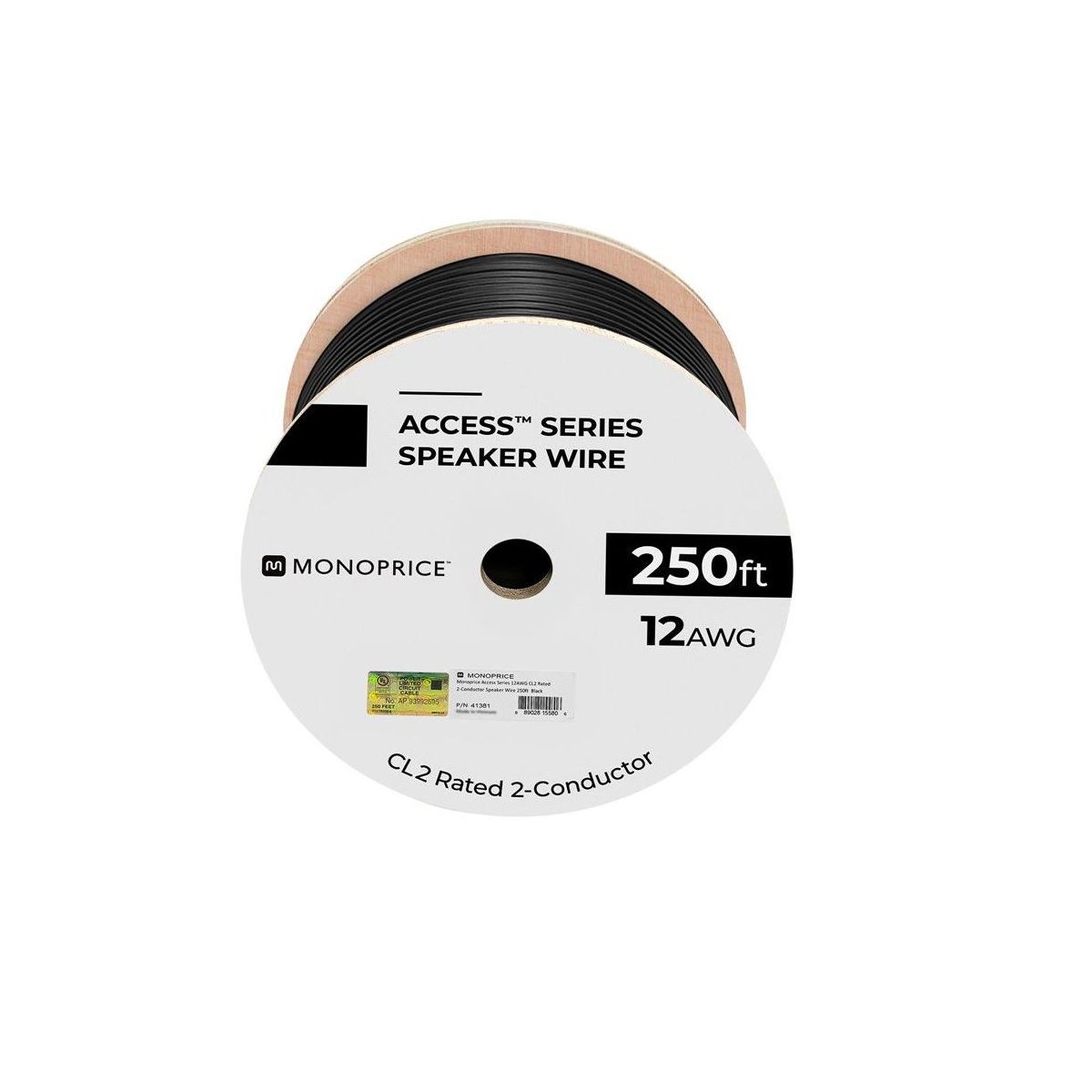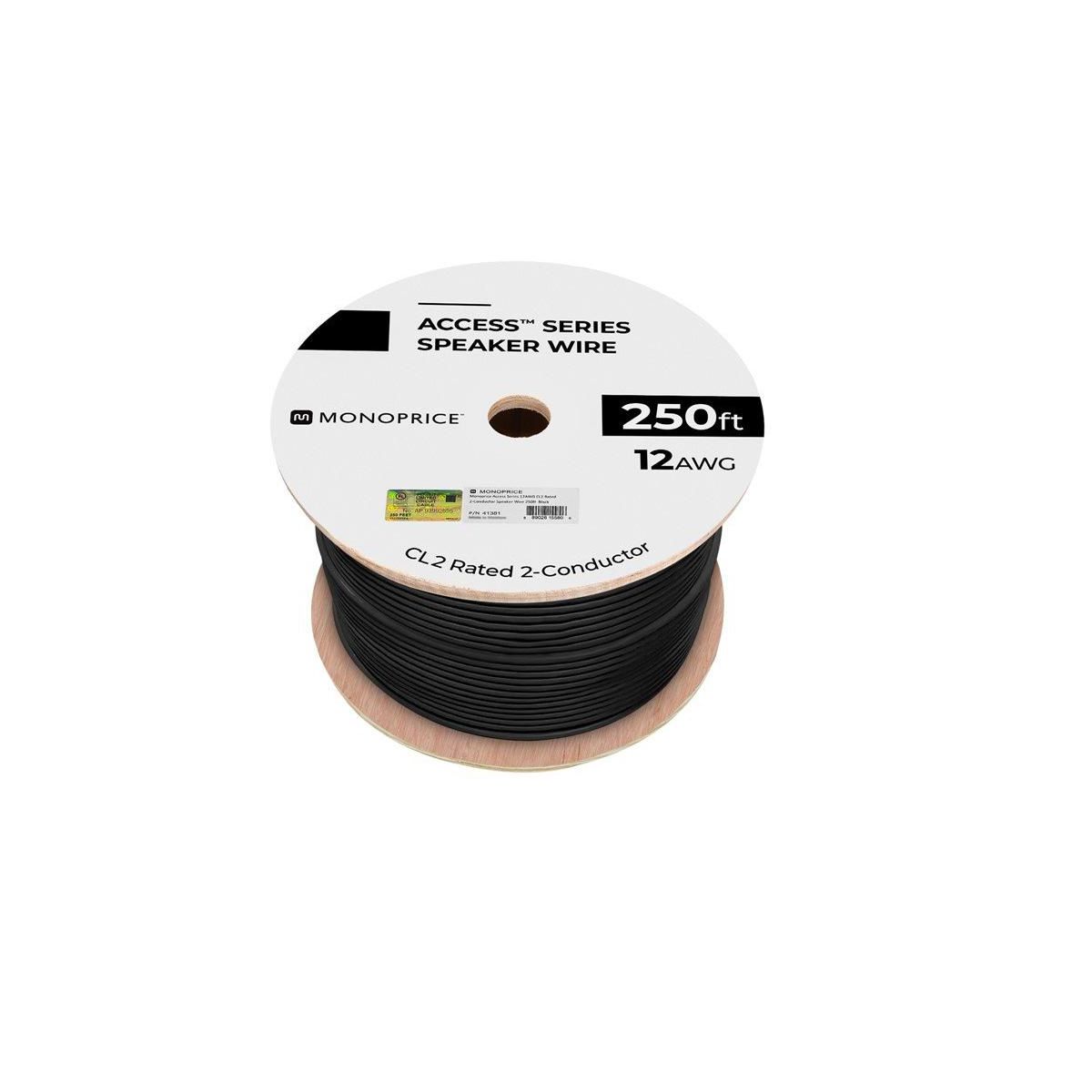 Monoprice Speaker Wire, CL2 Rated, 2-Conductor, 12AWG, 250ft, Black