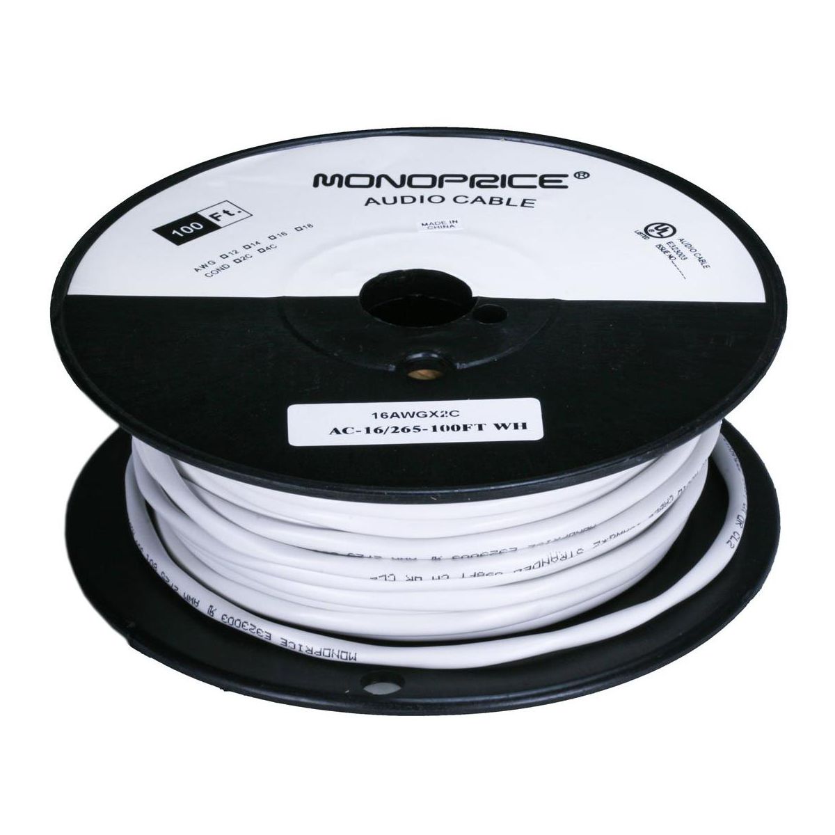 Monoprice Speaker Wire, CL2 Rated, 2-Conductor, 16AWG, 100ft, White