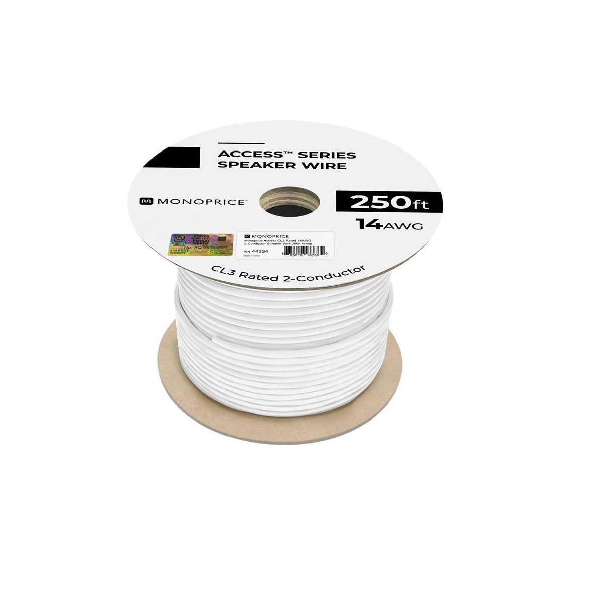 Monoprice Speaker Wire, CL3 Rated, 2-Conductor, 14AWG, 250ft, White