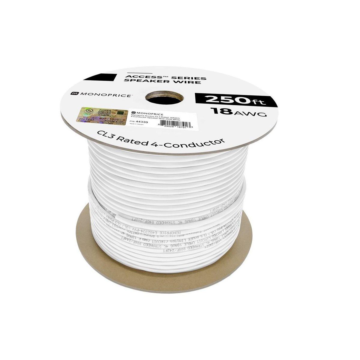 Monoprice Speaker Wire, CL3 Rated, 4-Conductor, 18AWG, 250ft, White