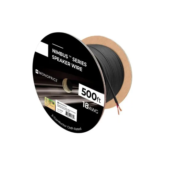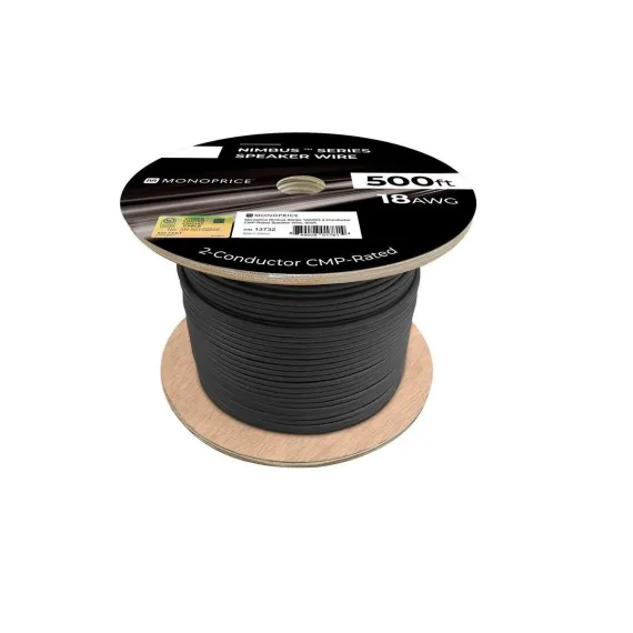 Monoprice Speaker Wire, CMP Rated, 2-Conductor, 18AWG, 500ft, Black offers high-quality audio transmission with oxygen-free copper conductors. CL2 rated for in-wall installation, it's perfect for home theater and professional audio setups.