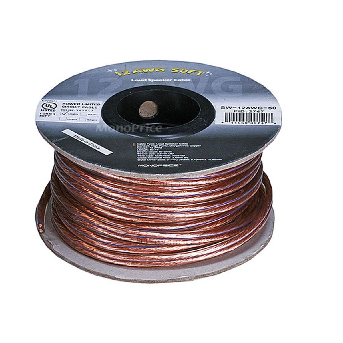 Monoprice Speaker Wire, Oxygen-Free CL2 Rated, 2-Conductor, 12AWG, 50ft