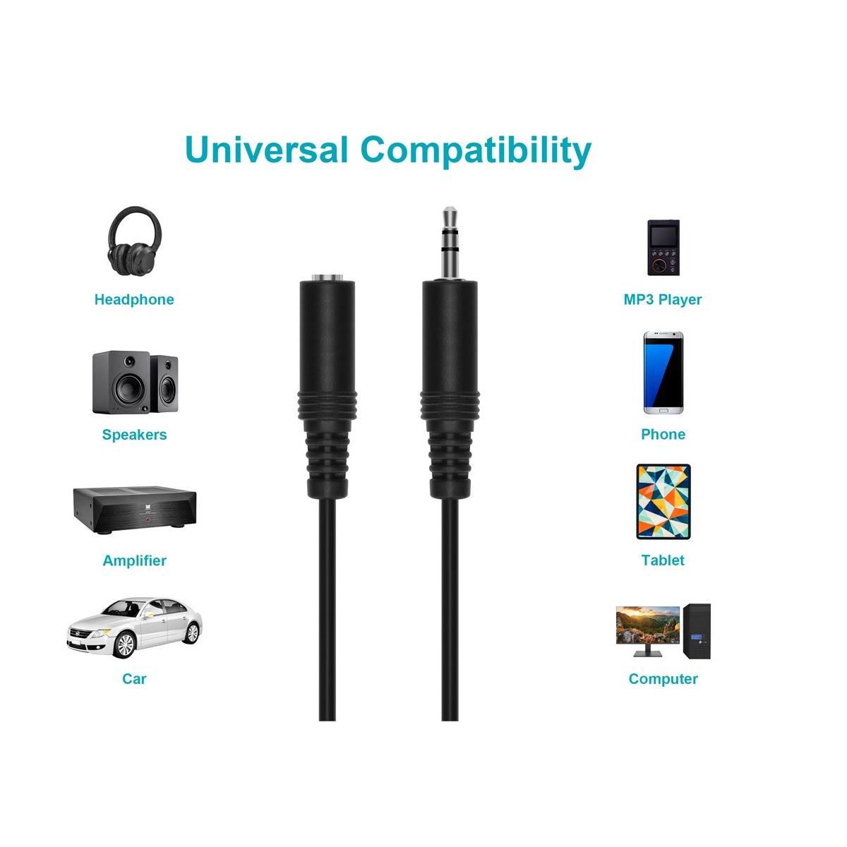 Monoprice Stereo Extension Cable - 12 Feet - Black | 3.5mm Plug/Jack Male/Female