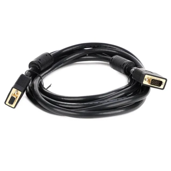 This double-shielded extension cable is designed to handle analog VGA and extended VGA resolutions. It features a male DE-15 (aka HD-15 or DB-15) connector on one end and a female DE-15 connector on the other end. The connectors and pins are gold plated for smooth, corrosion-free connections. It includes ferrite cores at each end, which ensure that EMI and RFI interference will not enter your video system.