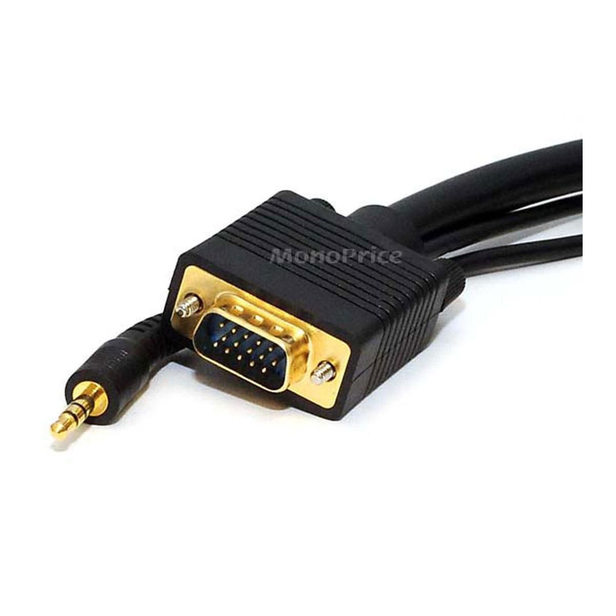 Monoprice Super VGA Cable - 100 Feet - Black | VGA/SVGA Male to Male Monitor Cable w/Stereo Audio and Triple Shielding, 22AWG conductor