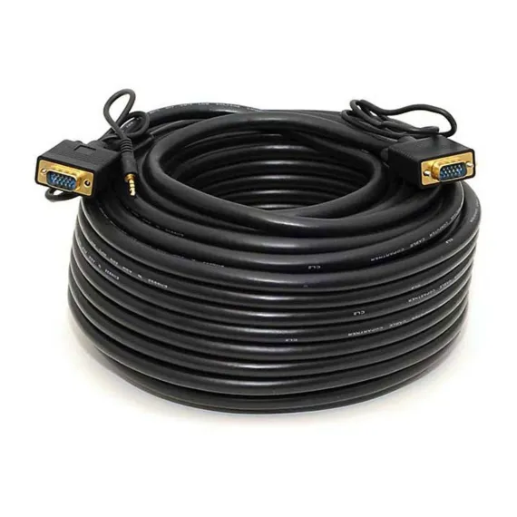 Monoprice Super VGA Cable - 100 Feet - Black | VGA/SVGA Male to Male Monitor Cable w/Stereo Audio and Triple Shielding, 22AWG conductor