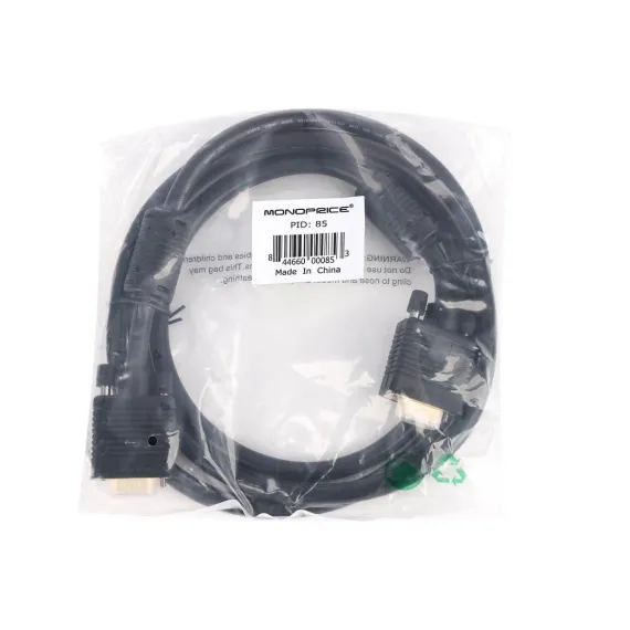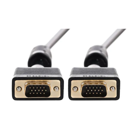 Connect your SVGA monitor to your computer using this super VGA monitor cable from Monoprice! This double-shielded cable is designed to handle analog VGA and extended VGA resolutions. It features gold-plated male DE-15 (aka HD-15 or DB-15) connectors on each end for smooth, corrosion-free connections. Each heavy duty connector head includes thumbscrews for securing the plug to a panel connector. It includes ferrite cores at each end, which ensure that EMI and RFI interference will not enter your video system.