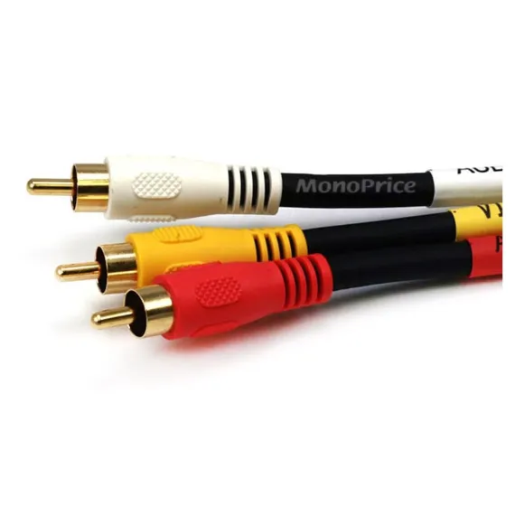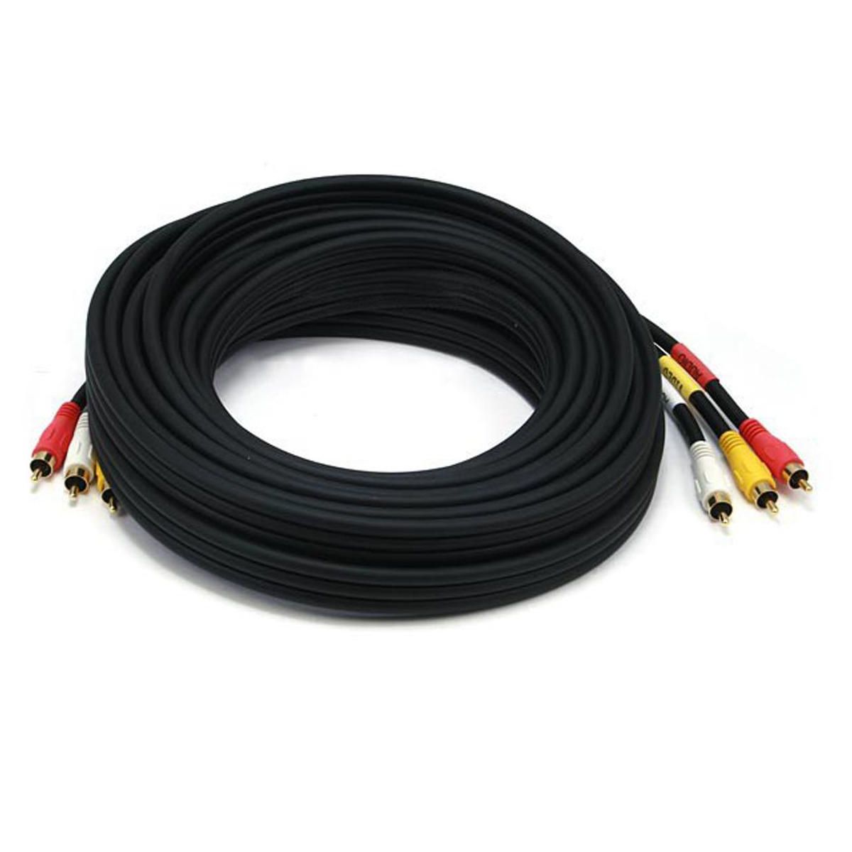 Monoprice Triple RCA Stereo Video Dubbing Composite Cable - 25 Feet - Black | Fully shielded Gold plated RCA connectors