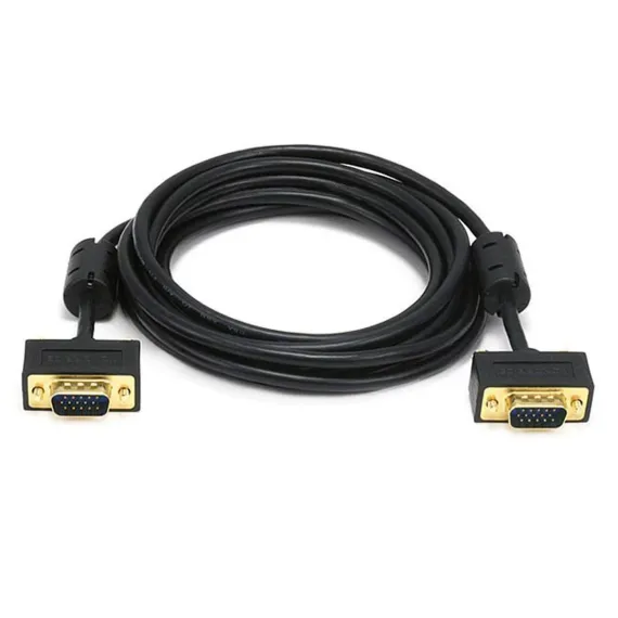Despite the introduction of DVI and HDMI, the common VGA connection is still the primary connection for most computer monitors. This ultra slim cable is designed to handle analog VGA and extended VGA resolutions. The conductors for the three color lines are 30awg coaxial, while the remaining conductors are 32awg stranded wire. The cable features gold-plated male DE-15 (aka HD-15 or DB-15) connectors on each end for smooth, corrosion-free connections. It includes ferrite cores at each end, which ensure that EMI and RFI interference will not enter your video system.