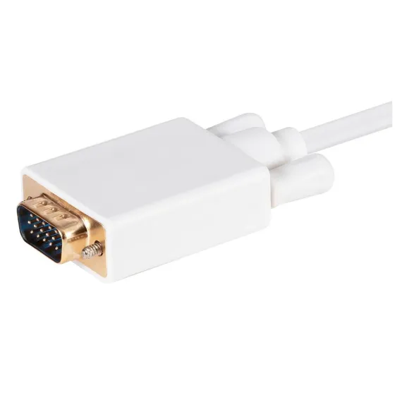 Connect your Mini DisplayPort video output directly to a VGA monitor without needing a separate adapter using this 32AWG Mini DisplayPort to VGA Cable from Monoprice!This cable plugs into the Mini DisplayPort output of your video card or Mac computer and directly into the input port of a VGA monitor. It supports video resolutions up to 1920x1080p with full digital to analog video conversion. The cable is shielded to protect from stray RFI/EMI emissions and features gold plated connectors for smooth, corrosion free connections.