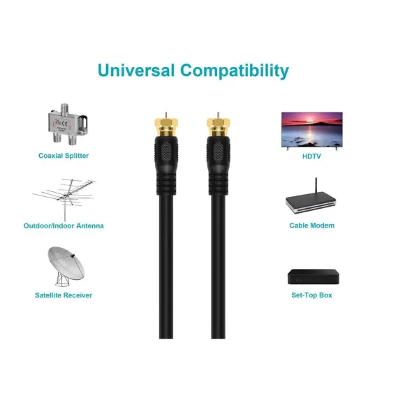 Monoprice Video Cable - 100 Feet - Black | RG6 Quad Shield CL2 Coaxial Cable with F Type Connector