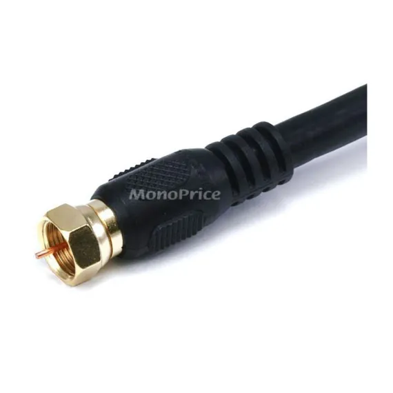 Monoprice Video Cable - 12 Feet - Black | RG6 Quad Shield CL2 Coaxial Cable with F Type Connector