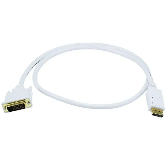 Monoprice 3ft 28AWG DisplayPort to DVI Cable, White supports high-resolution video output for monitors and displays. Ideal for professional and home office environments.
