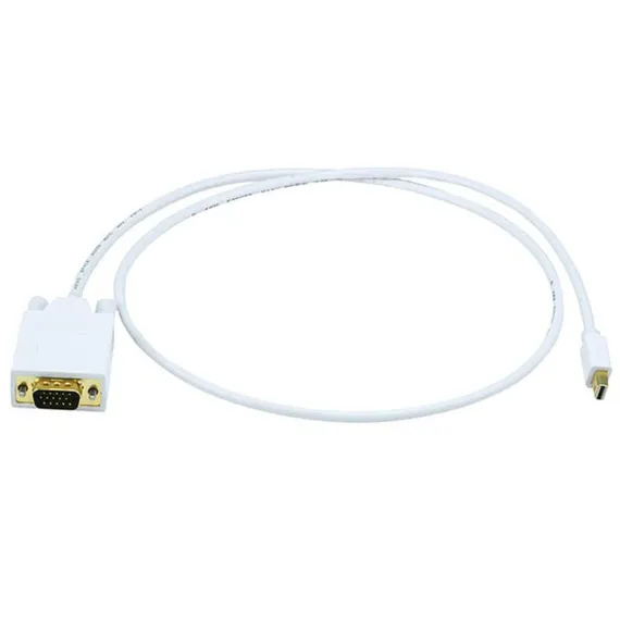 Connect your Mini DisplayPort video output directly to a VGA monitor without needing a separate adapter using this 32AWG Mini DisplayPort to VGA Cable from Monoprice! This cable plugs into the Mini DisplayPort output of your video card or Mac computer and directly into the input port of a VGA monitor. It supports video resolutions up to 1920x1080p with full digital to analog video conversion. The cable is shielded to protect from stray RFI/EMI emissions and features gold plated connectors for smooth, corrosion free connections.
