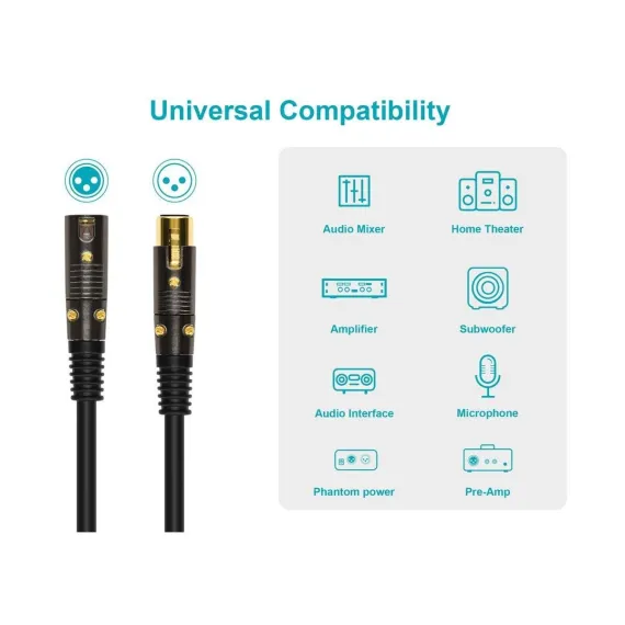 Crafted with precision, these cables utilize impedance balanced lines that effectively minimize electromagnetic and radio frequency interference, extending the cable's operational range. Unlike traditional unbalanced RCA cables, these XLR cables sport a separate braided shield, adding an extra layer of protection against unwanted interference, ensuring crystal-clear audio and eliminating ground loop issues.