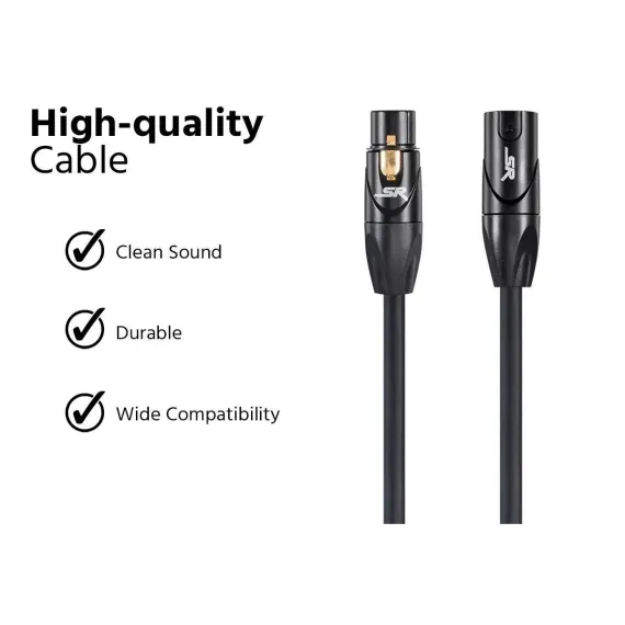 Monoprice XLR Male to XLR Female Cable [Microphone & Interconnect] - 15 Feet - Black | Gold Plated, 16AWG - Stage Right Series