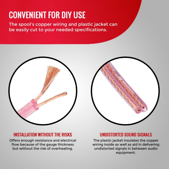 For a safe and convenient DIY home theater or gaming system installation, you'll want home theater speaker wire home speaker wire speaker cable 12 guage audio wires for speakers that will help you maximize the audio-visual potential of your setup. The Monster Speaker Wire Copper Clad Aluminum Cable Spool 12 guage speaker wire speaker wire copper copper speaker wire audio speaker wire monster speaker cable 12g speaker wire offers all the features you need without the risk. The wire is covered by a plastic jacket to deliver proper insulation and undistorted signal. Providing just enough resistance and electrical flow, the Monster copper cable wire speaker wire outdoor chord speaker cable speaker wire for home theater speaker wire home theatre sound speaker cable audio speaker cables avoids running the risk of overheating especially when you're setting up an extensive theater, streaming, or gaming system. The speaker copper clad aluminum wire is neatly spooled so that you can easily dispense the wire, cut as desired, and keep them away as soon as you're done with your installation. Take advantage of Monster's advanced cable technologies and start your installation setup with the Monster Speaker Wire Copper Clad Aluminum Cable Spool speaker wire speaker cable speaker wire 12 guage speaker cables speaker wires speaker wire cable monster speaker wire copper speaker wire.