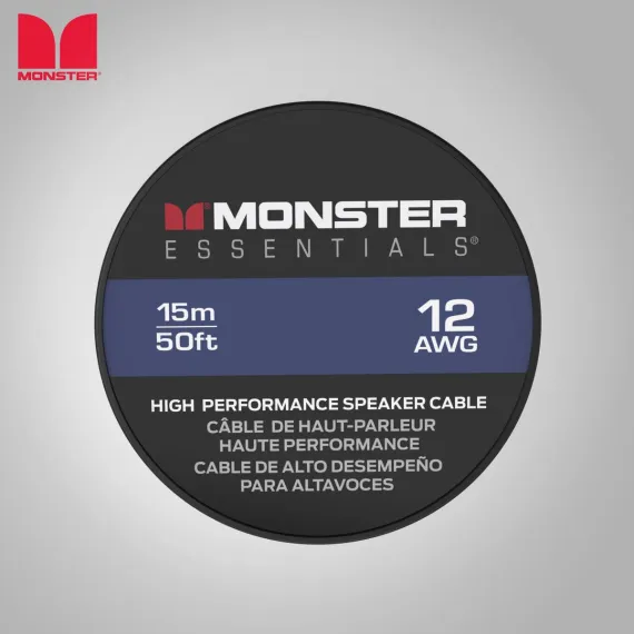 Monster Essentials High Performance Speaker Wire 12 Gauge Copper Clad Aluminum (CCA) Speaker Cable 50 FT Spool for Receivers, Speakers, and Car Audio