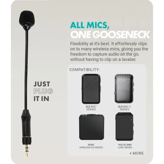 Movo MV-M101 Gooseneck Omnidirectional Lavalier Microphone- Compatible with DJI Mic/Rode Wireless Go Series Wireless Transmitters