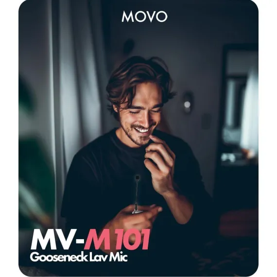 Experience versatile and clear audio capture with the Movo MV-M101 Gooseneck Lavalier Microphone, designed for content creators and interviewers. This lapel mic features a flexible gooseneck for precise placement and is compatible with DJI Mic, Rode Wireless Go Series, and other leading wireless transmitters. Its omnidirectional polar pattern ensures low distortion and a wide dynamic range, capturing clear and accurate voice reproduction. The portable design allows for easy setup and operation within a 1ft pick-up range, making it perfect for interviews and dynamic content creation.