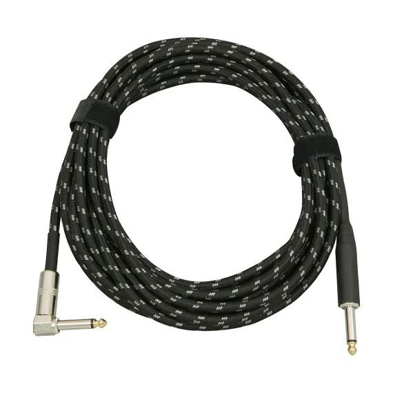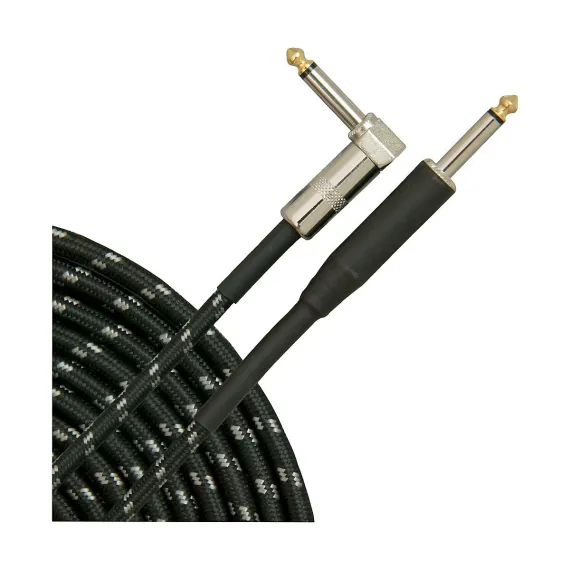 The Musician's Gear tweed right angle instrument cable combines durability, performance, and vintage style to meet the needs of serious players. Featuring oxygen-free copper wire, this cable ensures clear signal transmission with minimal interference, making it ideal for electric guitar, bass guitar, or keyboard setups. Its rugged construction includes heavy-duty heatshrunk tubing for strain relief, providing long-lasting reliability during demanding gigs or recording sessions. The stylish tweed wrap adds a classic aesthetic that complements any instrument or amp, while the gold-tipped right-angle connectors offer secure connections and a sleek, professional look. Instrument Cable With Right-Angle Design for Reliable Signal This cable's oxygen-free copper design guarantees low oxidation, preserving the signal quality over time. 'll get consistent, noise-free performance in every application, whether 're playing live or recording in home studio. The right-angle connectors are perfect for tight spaces on pedalboards or amplifiers, helping to keep setup neat and functional. The gold tips ensure optimal conductivity and prevent wear, even with frequent plugging and unplugging during sessions. Built to last, the heavy-duty heatshrunk tubing enhances durability by minimizing strain on critical connection points. This reinforcement is especially valuable for musicians who play often or transport their gear regularly. It's a reliable choice for players who need a cable that can handle heavy use without compromising signal clarity or stability. The tweed wrap adds a touch of vintage style to rig, making this cable more than just functional gear. Its retro-inspired design looks great with classic amps like Fender tube models or vintage-inspired guitars like the Gibson Les Paul or Fender Telecaster. While it's visually appealing, the tweed casing also adds a layer of protection against wear, ensuring the cable stays intact through consistent use. Versatile in application, this instrument cable works equally well with electric guitars, bass guitars, keyboards, or other electronic instruments. Its combination of durability, clear sound transmission, and aesthetic appeal makes it a top choice for musicians who play in a variety of settings, from home studios to live performances. Tweed Right Angle Cable for Reliable Guitar Signal on Stage, in Studio, or at Home The Musician's Gear tweed right angle instrument cable is a practical and stylish addition to any musician's rig. It's ideal for home practice, studio recording, or live gigs where reliability and sound quality are critical. The right-angle connectors are especially useful for managing tight spaces on pedalboards or amp inputs, while the durable construction ensures that this cable can stand up to frequent use. Its clear signal transmission and professional looks make it a great option for players who value quality in both performance and appearance. With the Musician's Gear tweed right angle instrument cable, get reliable signal quality, rugged durability, and vintage-inspired style in one package. Whether 're playing at home, in the studio, or on stage, this cable delivers consistent results and enhances setup. Add this dependable cable to rig and enjoy better sound and a professional look.