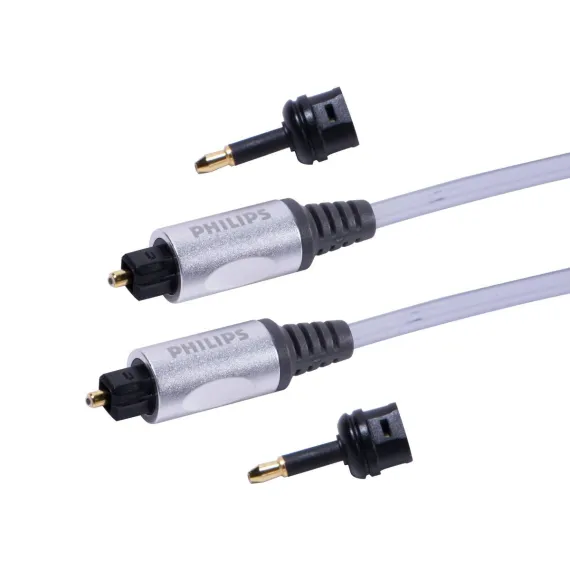 Philips 6' Elite Toslink Digital Fiber Optic Cable with 2 Mini Adapters - Gray: Male-to-Male AV Connection